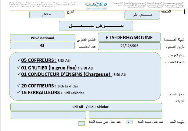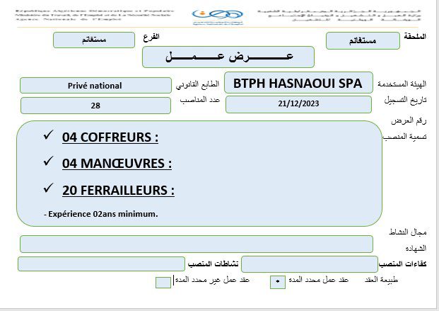 عرض عمل بشركة دحمون وحسناوي بمستغانم 70 منصب